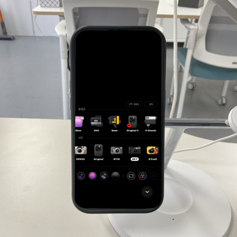 필름을 바꿔 촬영하는 느낌의 필터 선택도 가능하다. 아이폰 기본 카메라에서 제공하는 프리셋을 사용하면 흑백 촬영이 가능하지만 필름 감성의 흑백 촬영과는 그 느낌 자체가 다르다. 촬영 화면에는 격자 설정도 가능하고 촬영 즉시 갤러리에 저장이 되도록 설정도 가능하다.