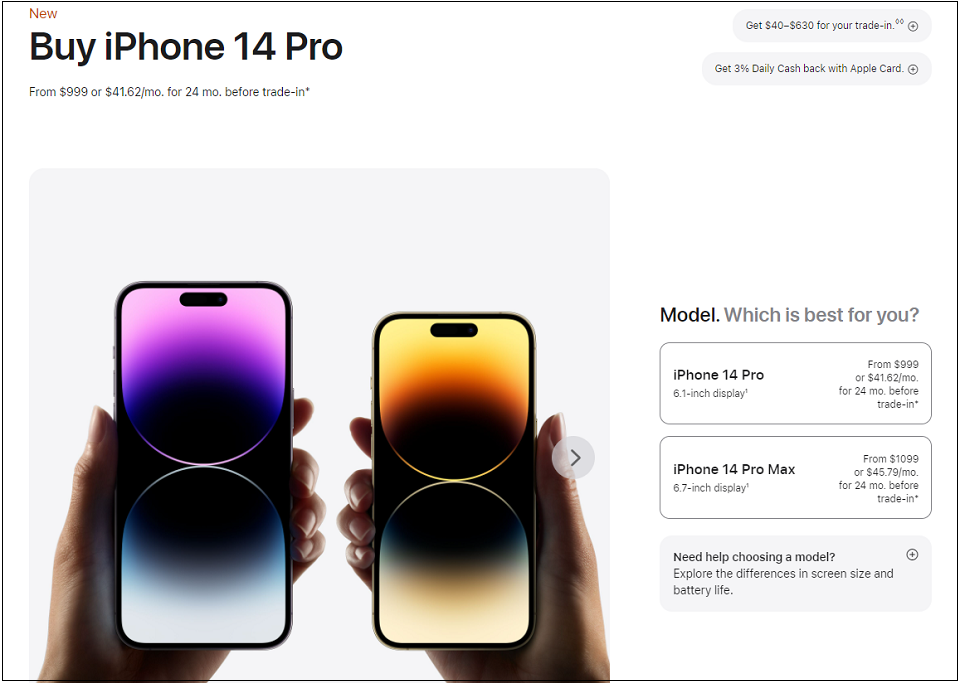 iPhone 14, 14 Plus, 14 Pro, 14 Pro Max를 구매할 수 있습니다.