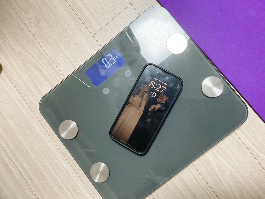 오늘은 어제와 동일한 몸무게로 다이어트 일기 시작합니다. 3일차인 오늘 아침에야 몸무게재면서 깨달았는데 사진찍기위해서 휴대폰을 들고 있을때랑 아닐때랑 몸무게가 꽤 차이가 나는거에요..?? 그래서 재봤더니..