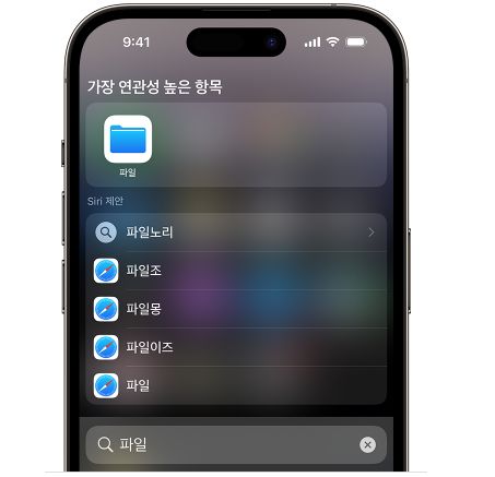 홈 화면 중앙을 쓸어내려 다음 파일 앱을 검색해 줍니다.