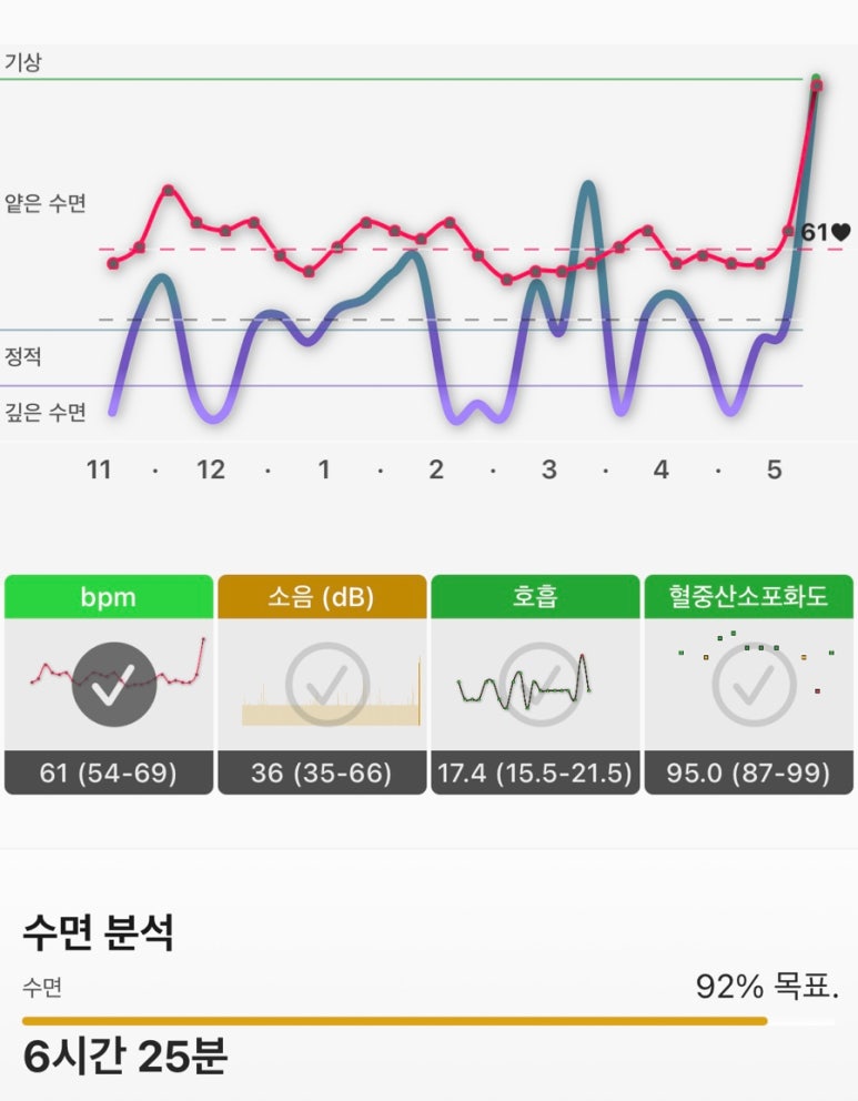 수면품질, 혈중산소포화도, 호흡수 등등
