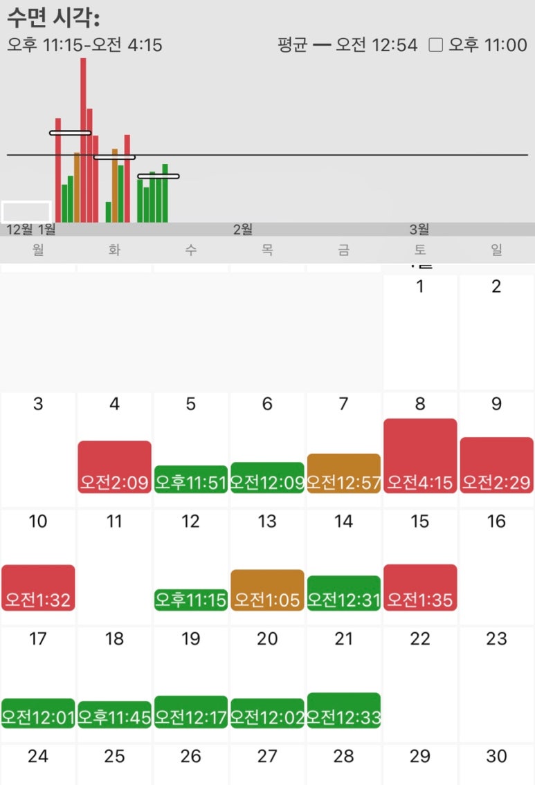 예전보다는 일찍 자려고 노력하고 있음을 알 수 있다^__^