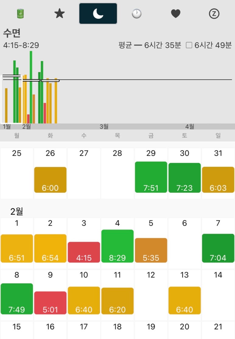 Autosleep이 자동으로 하루에 얼마나 잤는지 파악해준다!