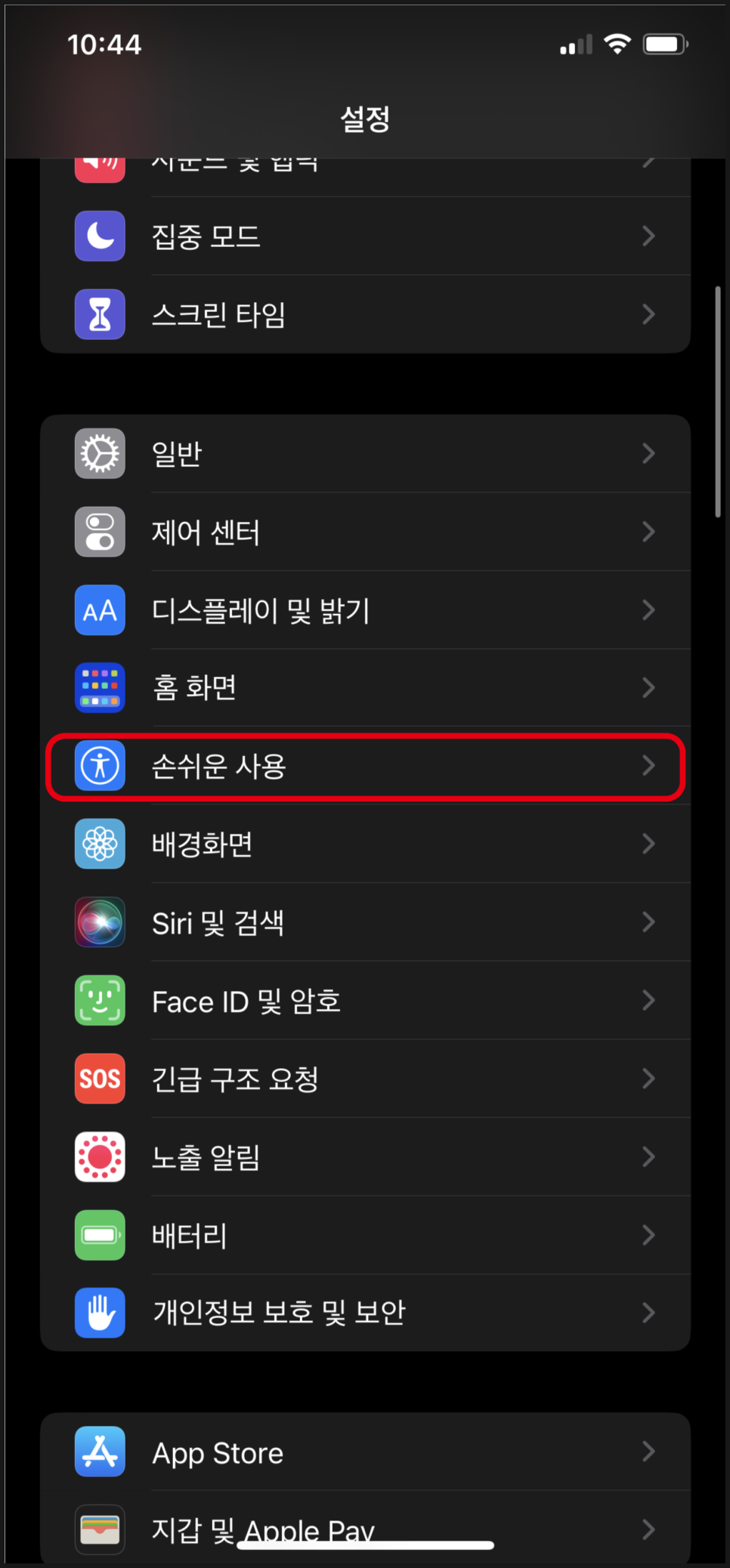 손쉬운 사용 단축키는 측면 버튼을 세 번 눌러 설정을 끄거나 켜는 단축키입니다.