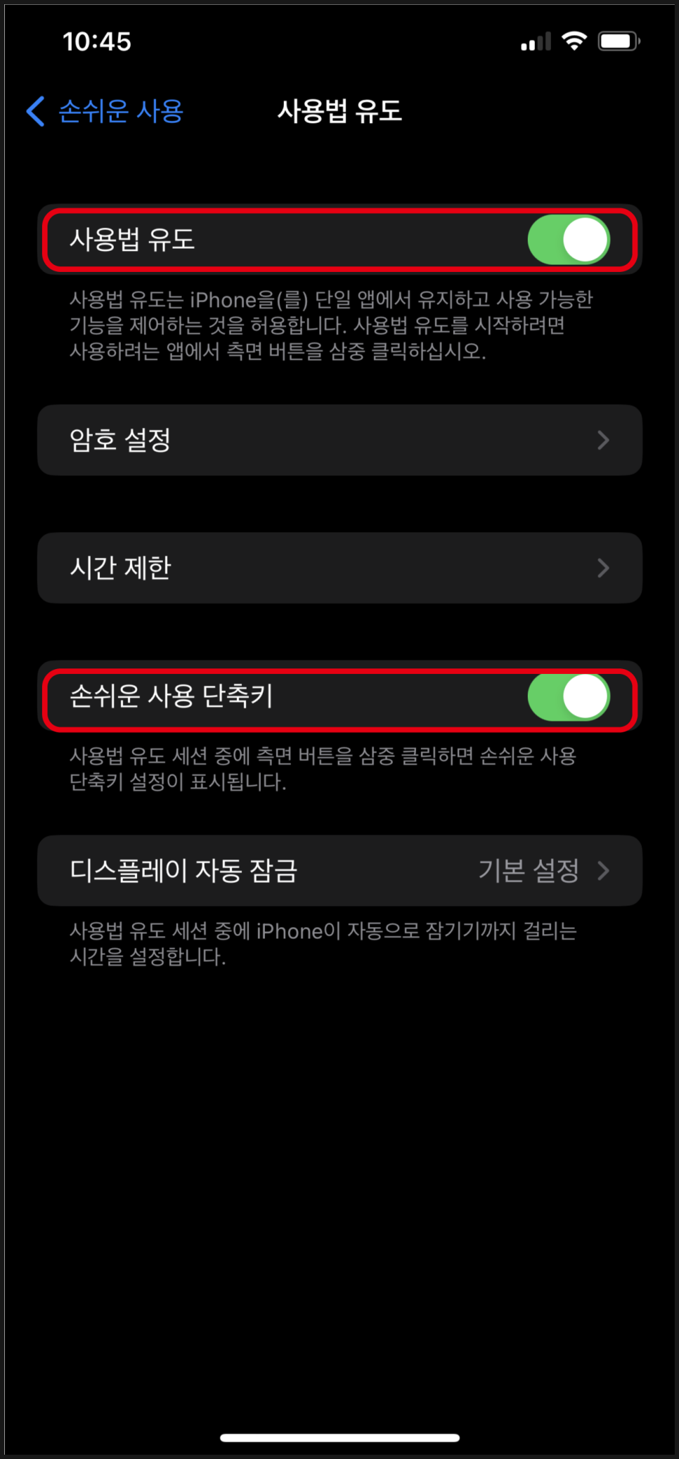 아이폰 하드웨어 버튼을 비활성화할 때나 다른 사람의 앱 사용 시간을 제한할 때 사용하면