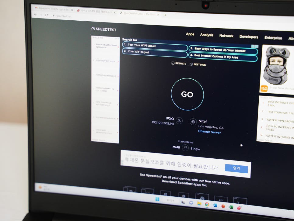 미국 로스엔젤레스로 VPN 우회를 해보니 실제 IP 주소 역시 LA에 위치한 것처럼 표시됩니다. 실제로는 서울에 있지만 인터넷 브라우저 상에서는 미국에 있는 것처럼 활동할 수 있다는 의미에요.