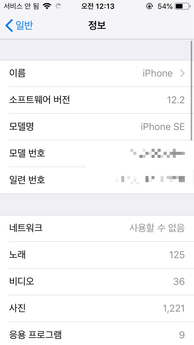 아이폰SE1 공기계 소프트웨어 업데이트 후