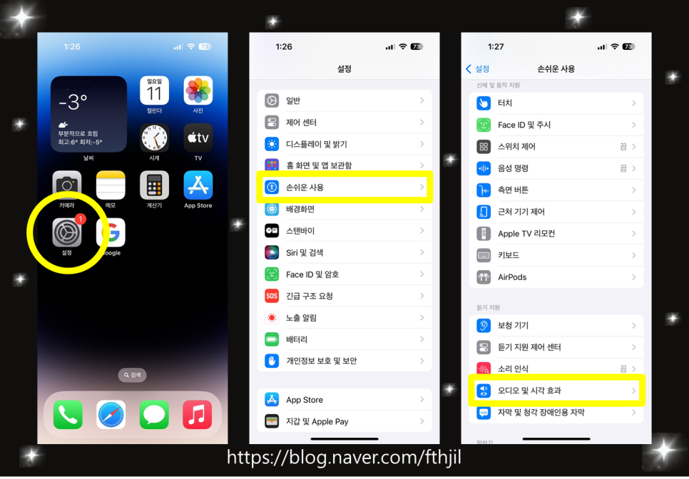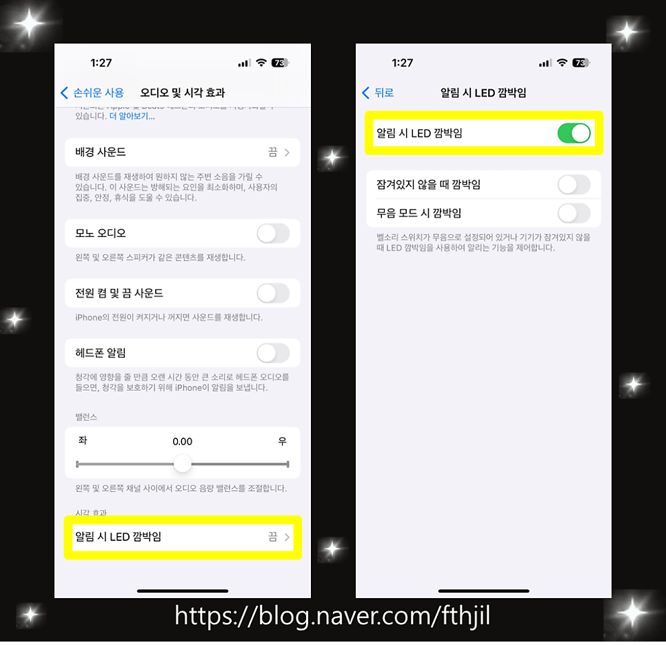 아이폰 알림 후레쉬 불빛 설정 방법