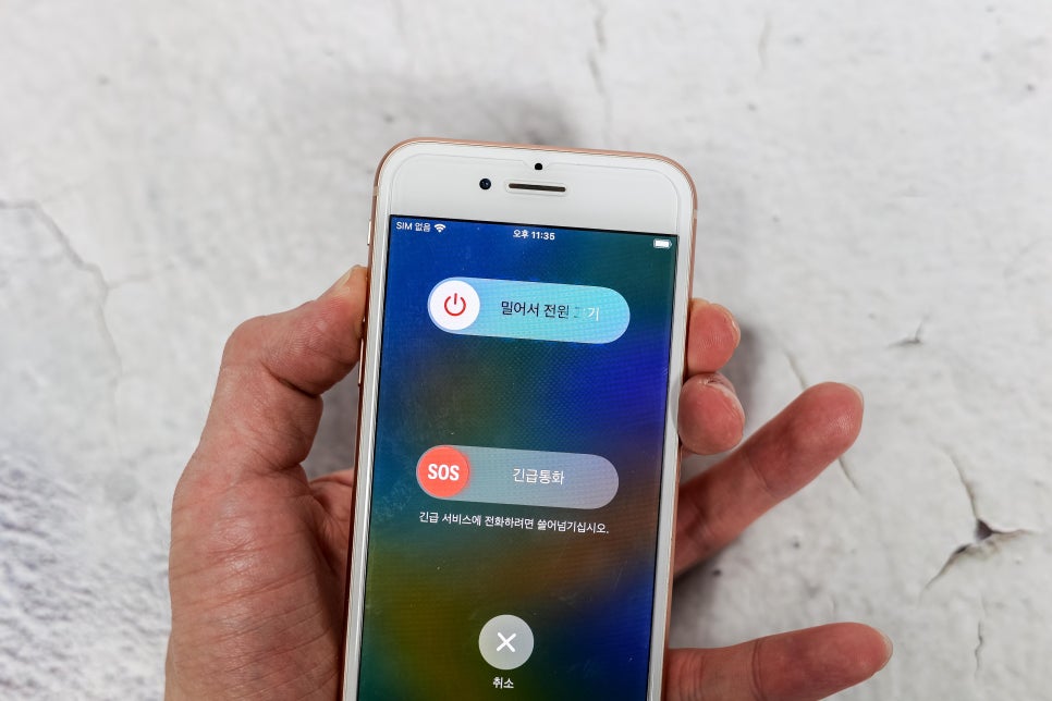 볼륨 윗키와 전원버튼을 동시에 길게 누르면 긴급통화와 밀어저 전원 끄기 메뉴가 나옵니다. 슬라이드해서 전원을 끄면 되겠습니다.