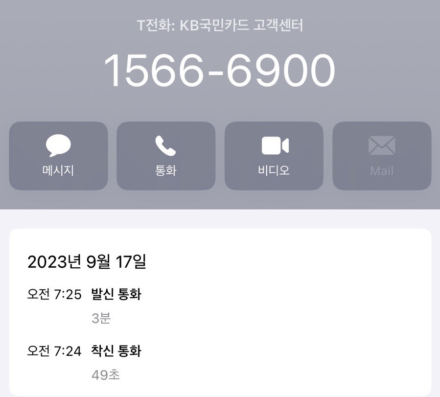 한창 자고 있는데 국민카드사에서 전화가 왔다