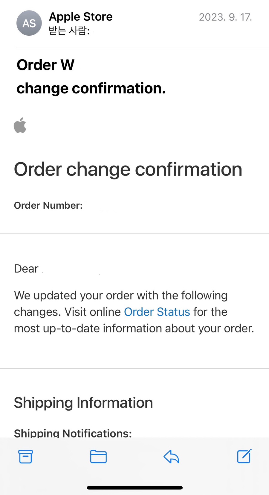 심지어 오더메일도 받지 못해서