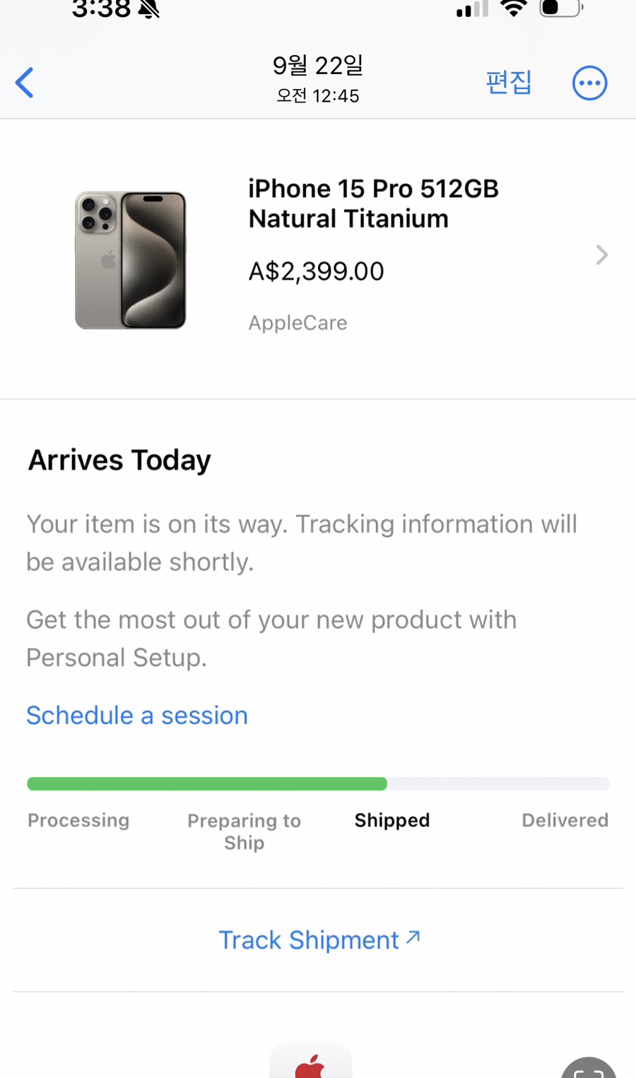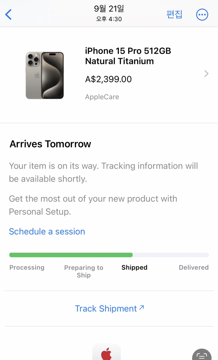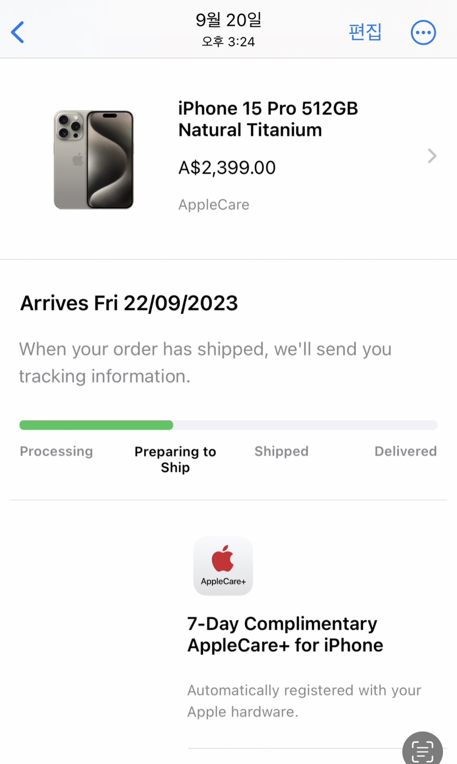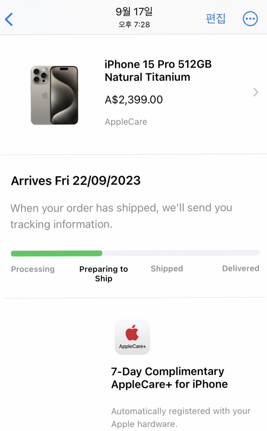 그리고 발매일인 9월 15일 9시에 애플스토어에 들어갔으나