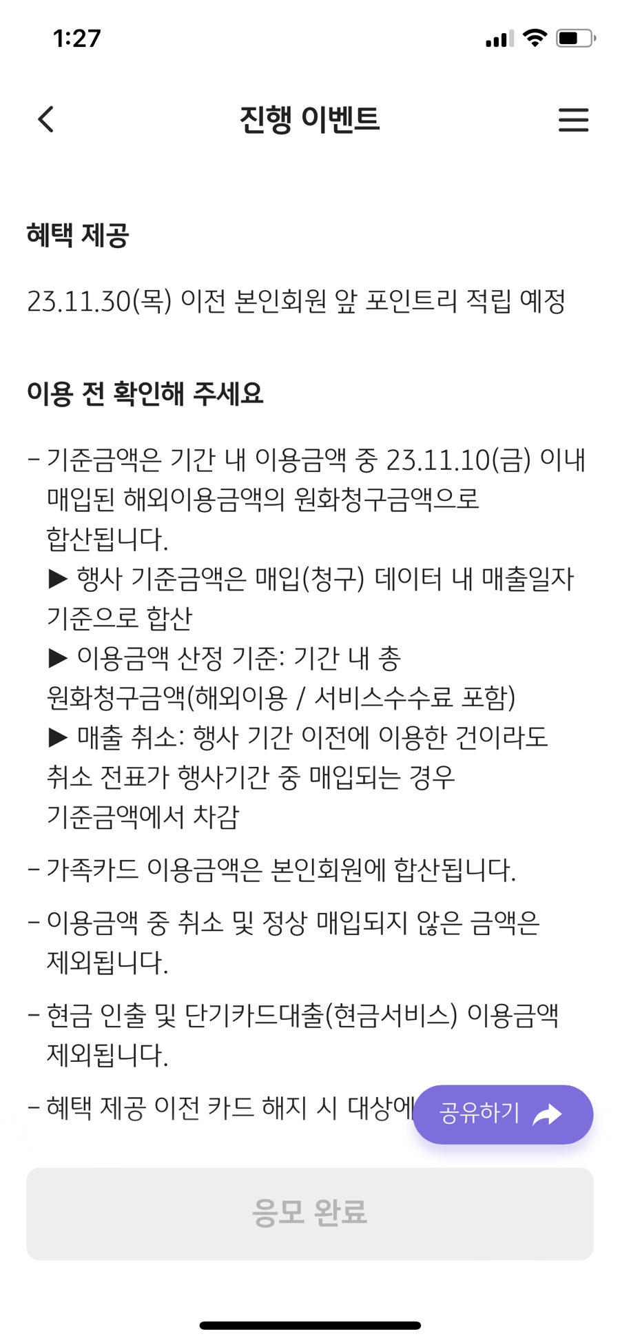 그리고 카드사 이벤트를 확인해봤는데