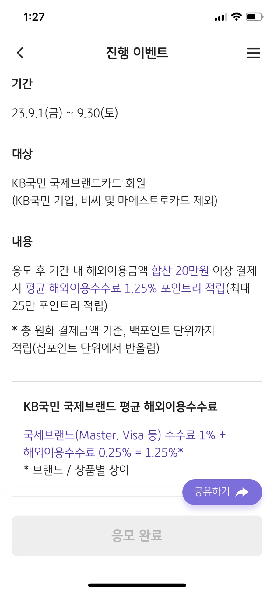 첫번째 이벤트-해외 이용 수수료 1.25% 적립