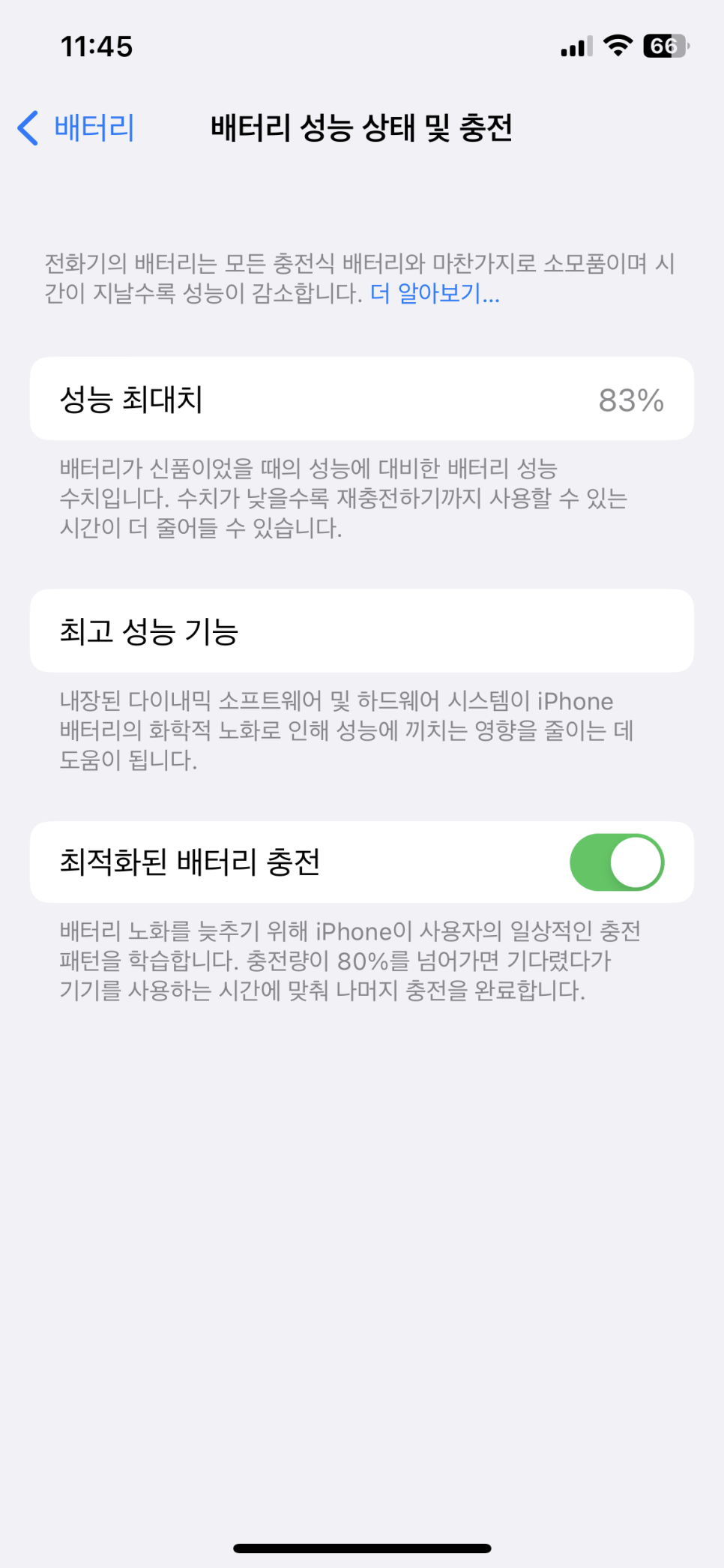 2년 3개월 사용 배터리효율 83%