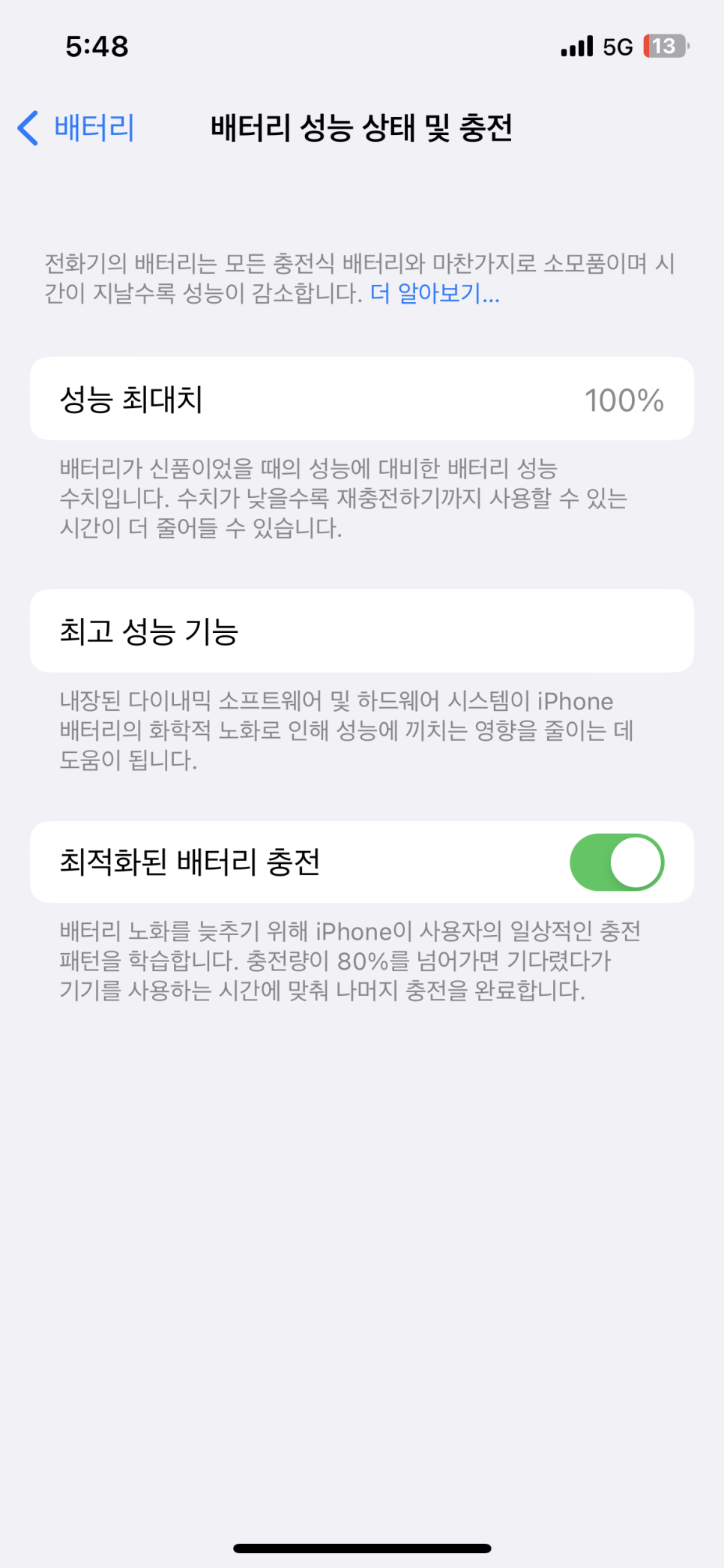 그때 수리하시는 분께 내가 "85%면 배터리 갈아도 별 차이 없을까요?"라고 여쭤보니