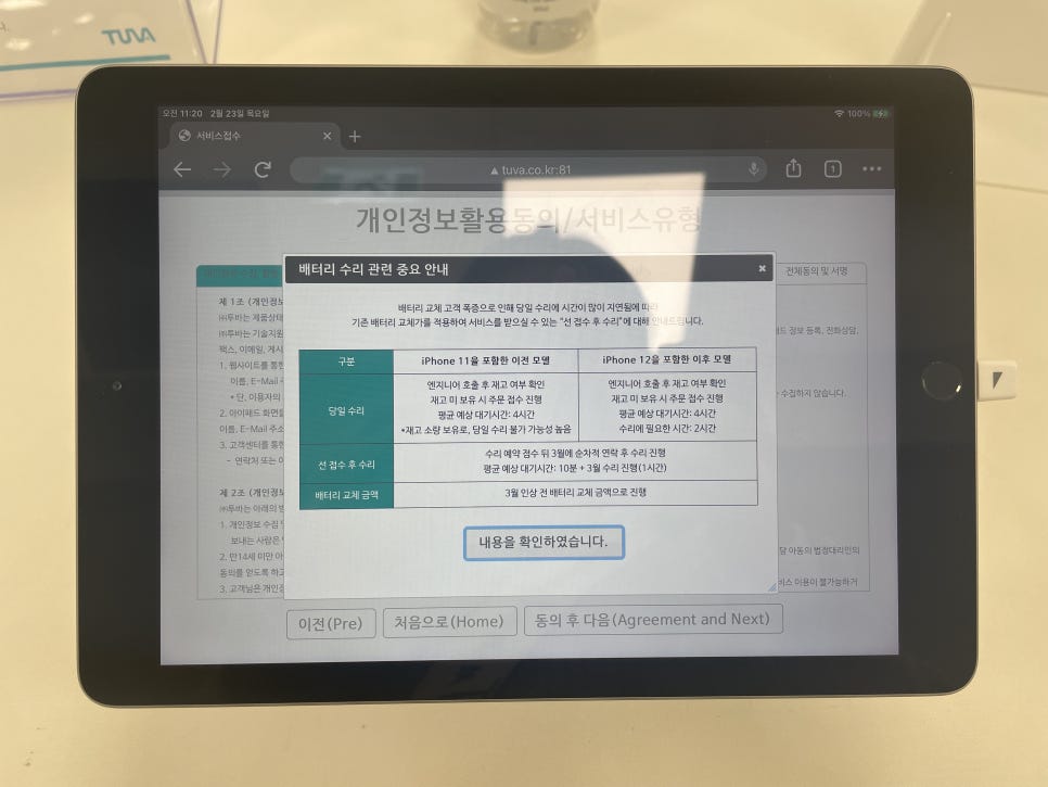 아이폰 배터리교체 하러 군산 투바 방문하시는분들은 꼭 아이패드 챙겨서 방문하시거나