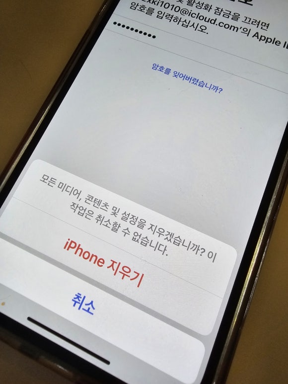 마지막 아이폰 초기화 진행 전에 사용하고 계시는 Apple ID 및 비밀번호를 입력하는 단계로 진입하게 됩니다.