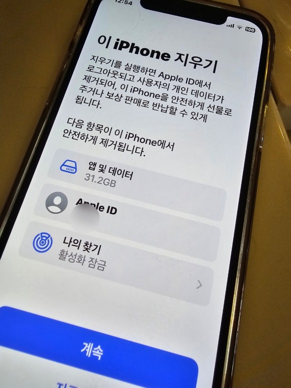 계속 아이폰 초기화 방법 진행을 원한다면 아래의 <계속> 탭을 눌러주시면 됩니다.