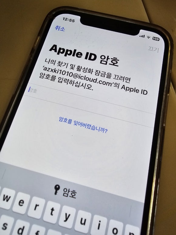 사용자가 아닌 타인이 초기화를 진행하고 아이폰을 사용하는 경우를 막기 위해 마지막 단계로 사용하고 있는 Apple ID와 비밀번호를 입력하고 있으니 입력 후 우측 상단에 위치한 <끄기>를 눌러주시면 됩니다.
