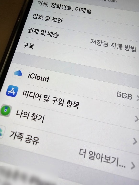 아래로 조금만 스크롤을 내려 <iCloud> 탭을 누르시고 다음 단계로 이동해 주시면 됩니다.