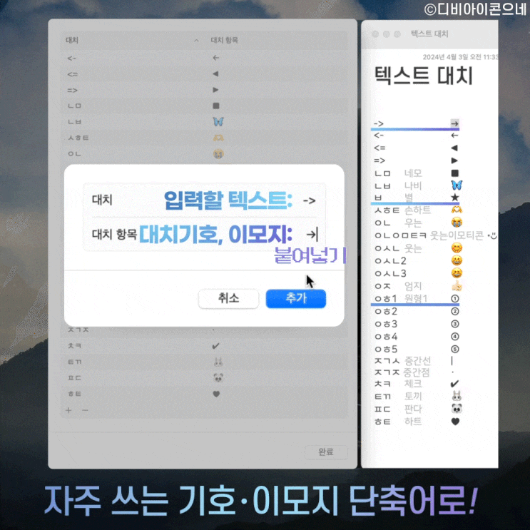 아이폰 텍스트 대치 모음 / 키보드 단축어 설정 - 애플 이모티콘 화살표 별 하트 기호 특수문자 자동 입력