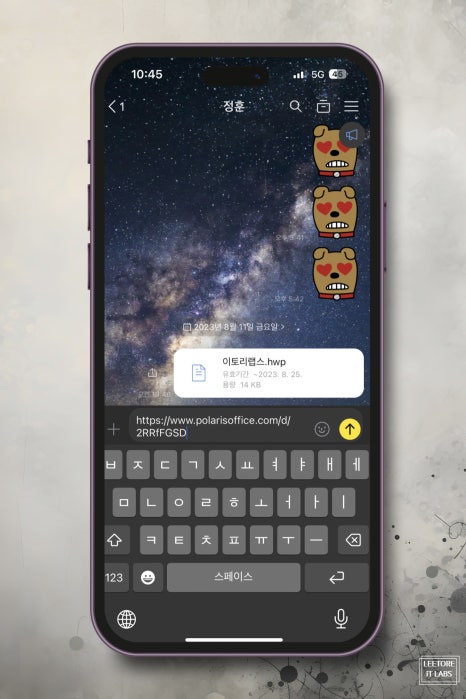 Hwp 한글파일은 카카오톡으로 전달받았다고 가정해 보자. 해당 파일을 눌러보면 공유 메뉴가 나올 텐데 상단에 있는 앱 리스트 중에서 <폴라리스 오피스>를 선택해서 열어주면 된다.