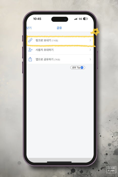 하단 메뉴 리스트가 나타날 텐데 <공유>을 선택하자. 그러면 3가지 옵션이 나타나는데 그중에서 상단에 <링크로 보내기>를 눌러주면 된다.