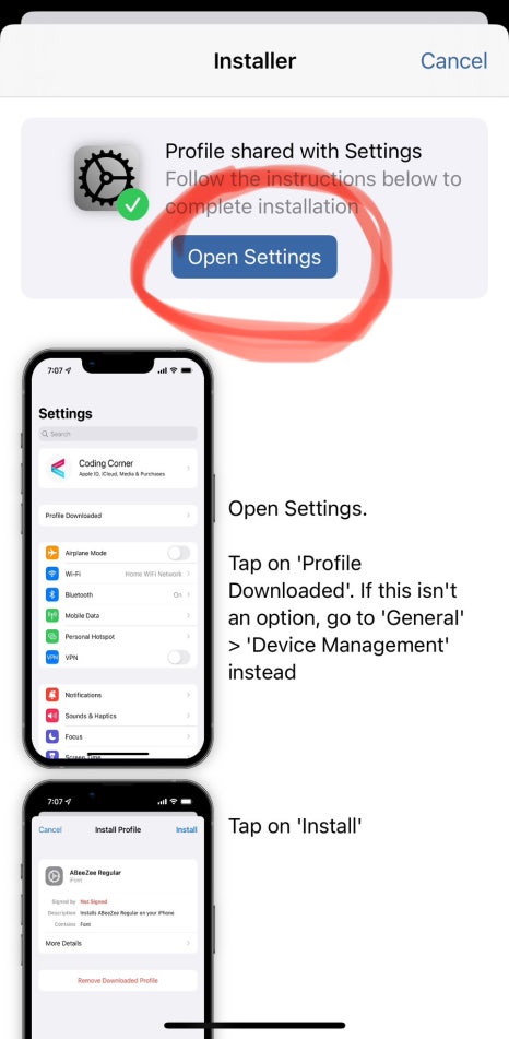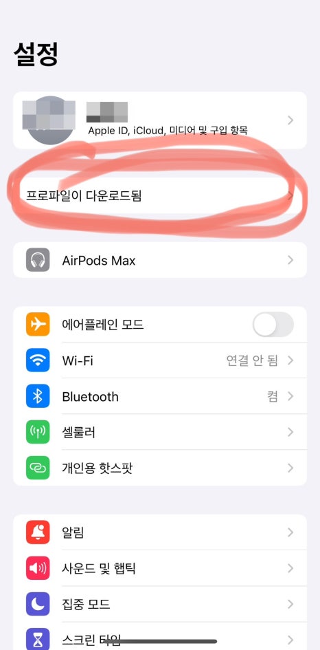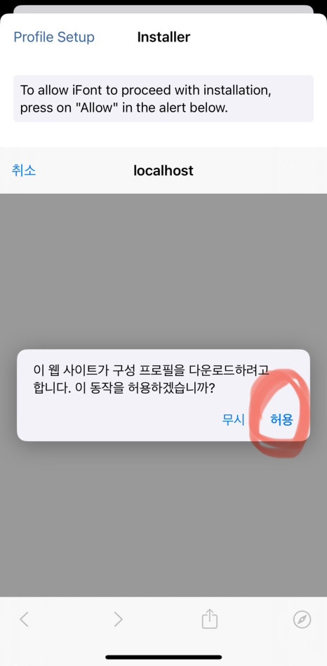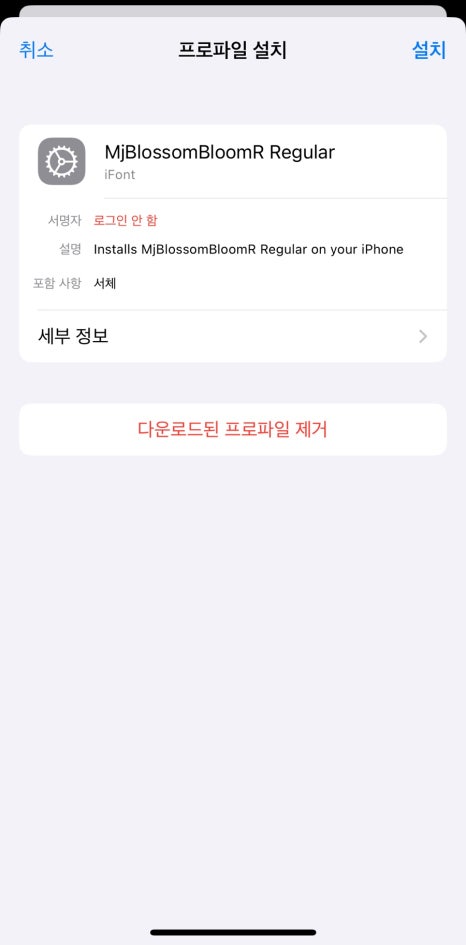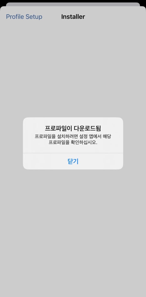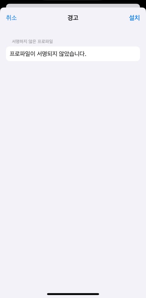 프로파일 설치에서 '설치' → 경고에서 '설치' →프로파일 설치됨에서 '완료'