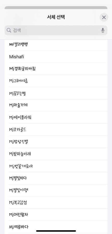 'OS서체' 선택하고 보이는 화면 리스트에서