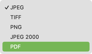 TIFF, PNG, PDF로 저장 가능하며