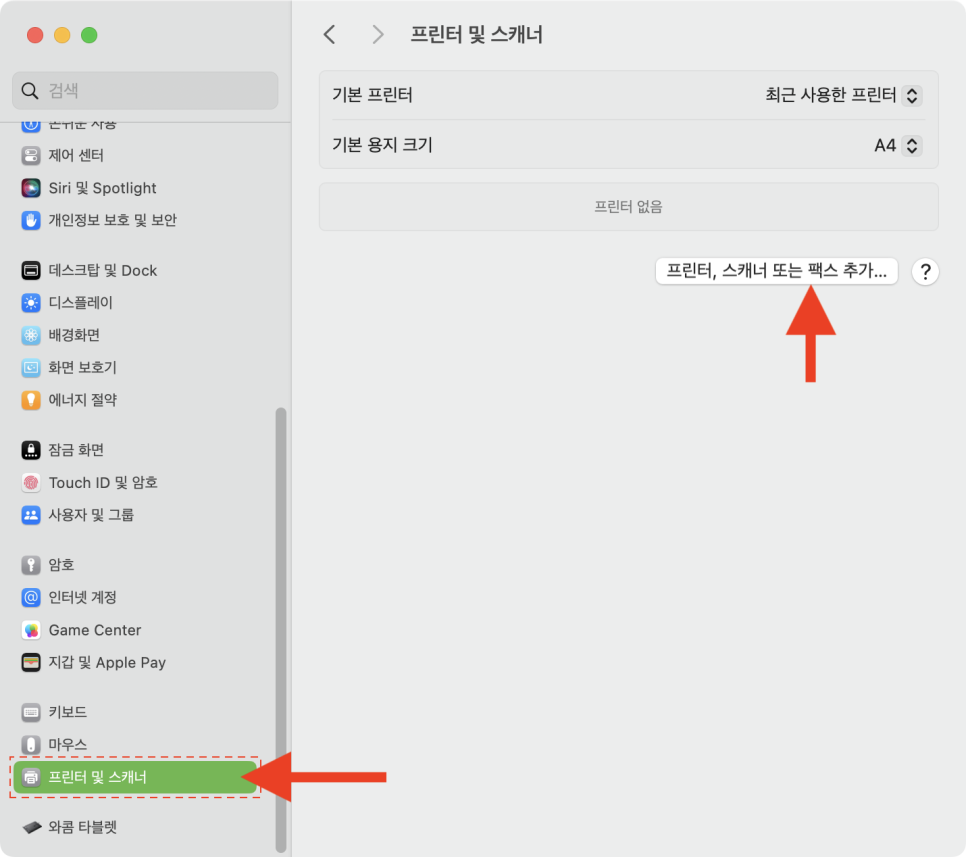 [프린터, 스캐너 또는 팩스 추가..]