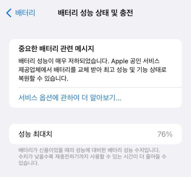 나의 아이폰의 배터리 상태,,,,,,