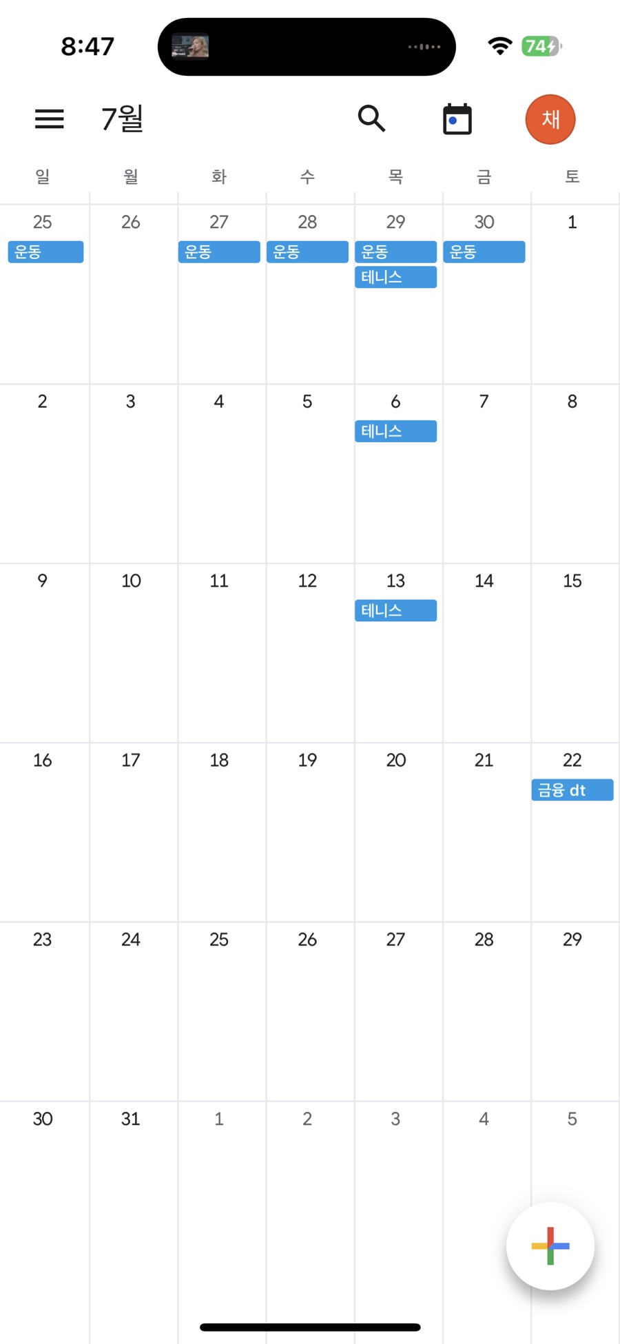 구글 캘린더를 열면 월별로 캘린더 확인을 할 수 있는데