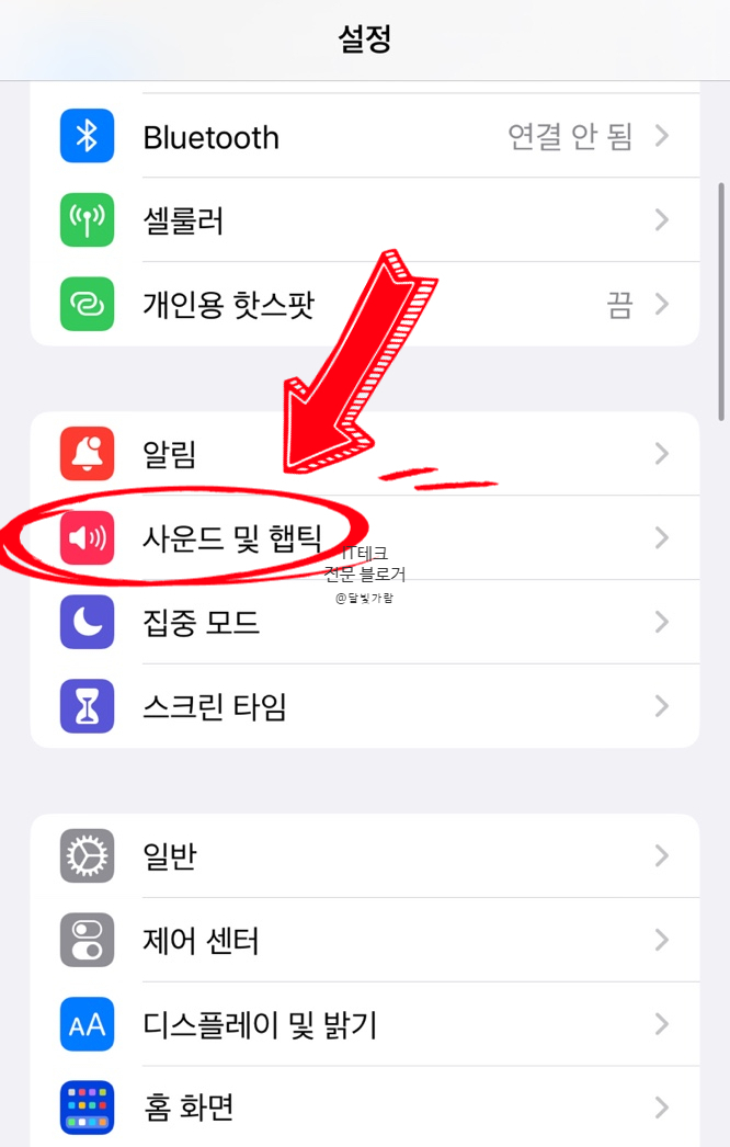 사운드 및 햅틱 패턴에서 벨소리라고 적힌곳을