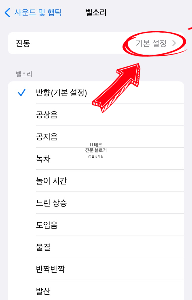 벨소리내에서 최상단을 보시면 진동이라는 목록에