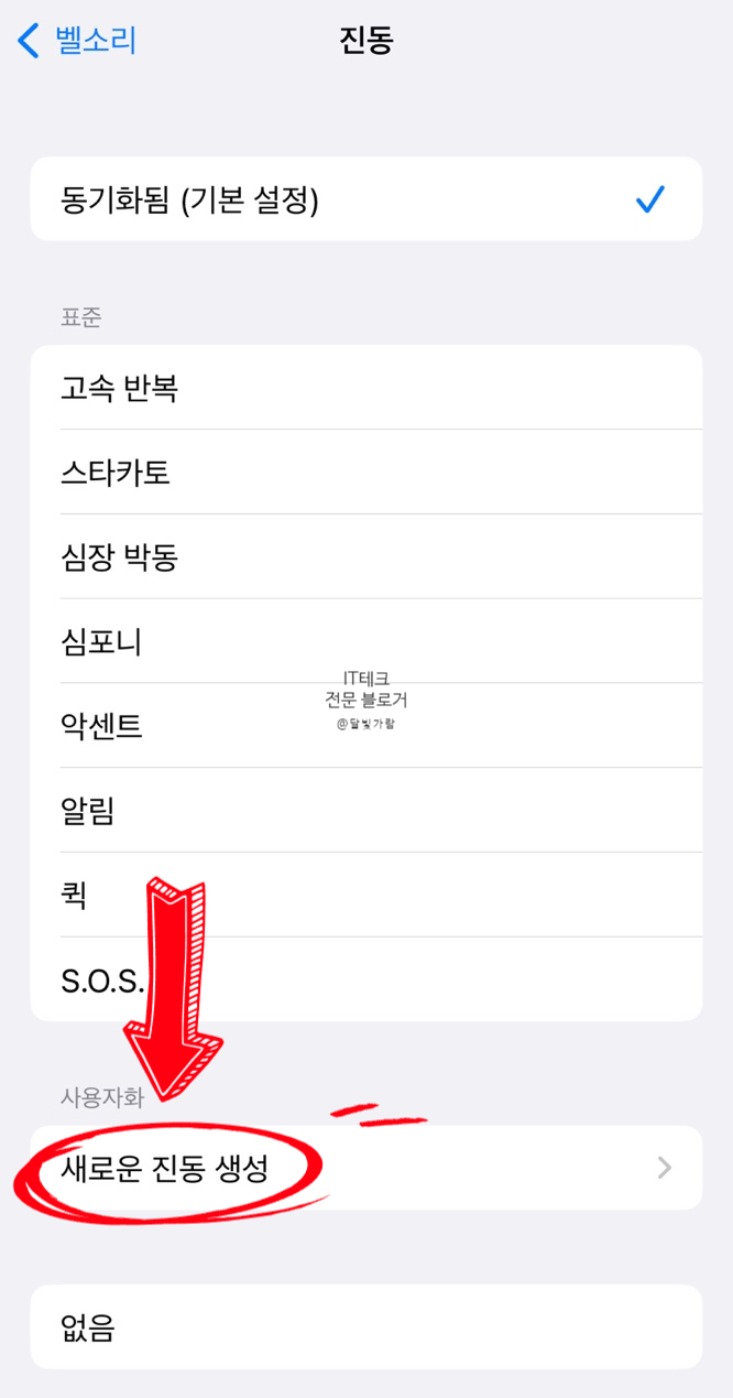 사용자화에서 새로운 진동 생성하기를 눌러주세요.