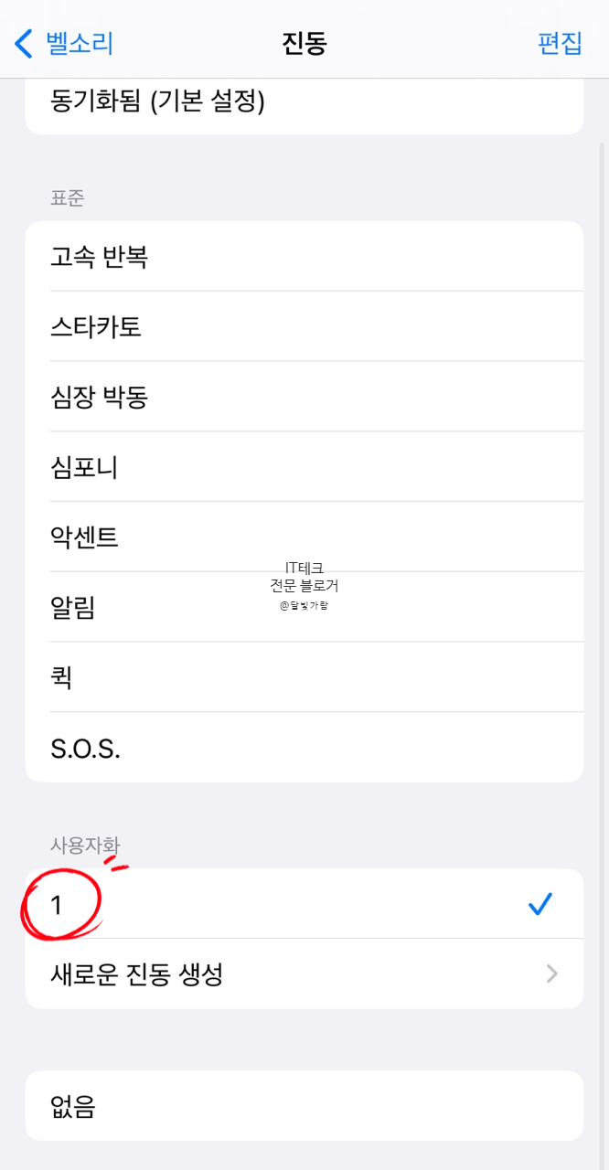 그러면 사용자화에서 만들어진 아이폰 진동이