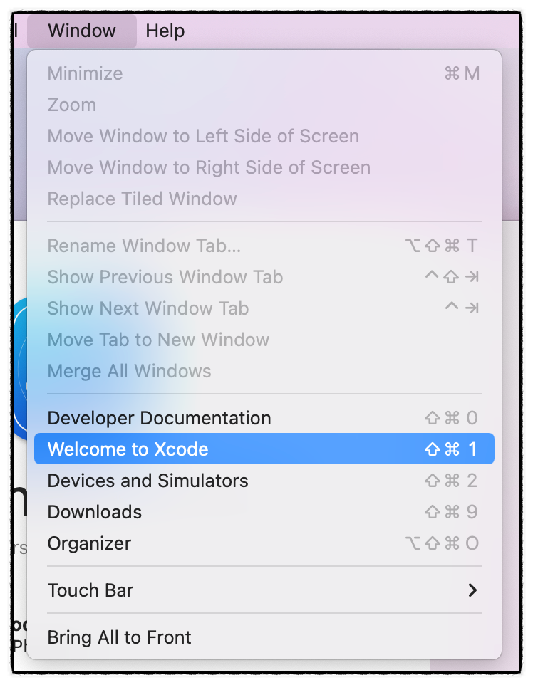 "Welcome to Xcode"를 선택해준다.