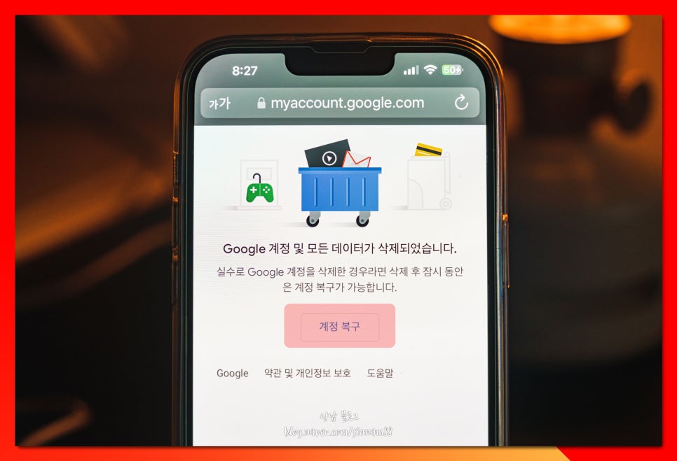 6. 여기까지 진행하시면, 서버 내에서 정보가 사라지게 되는데, 간혹 백업하지 못한 중요한 자료, 데이터 때문에 구글 계정 복구를 하고자 하는 분들이 있어, 잠시 동안 복원할 수 있는 기회를 제공해 주거든요.