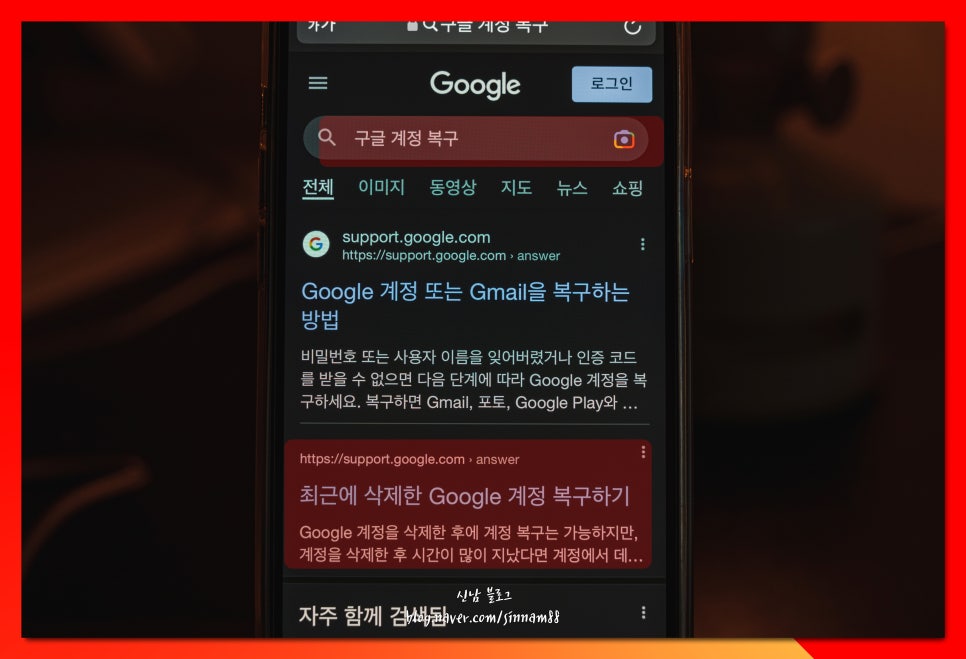 1. 본인이 의도하지 않았는데, 해킹으로 인한 삭제가 진행되었을 땐, google 검색 탭에서, <구글 계정 복구>를 입력 후, 최근 삭제한 google이라는 항목을 찾아 클릭해 줍니다.