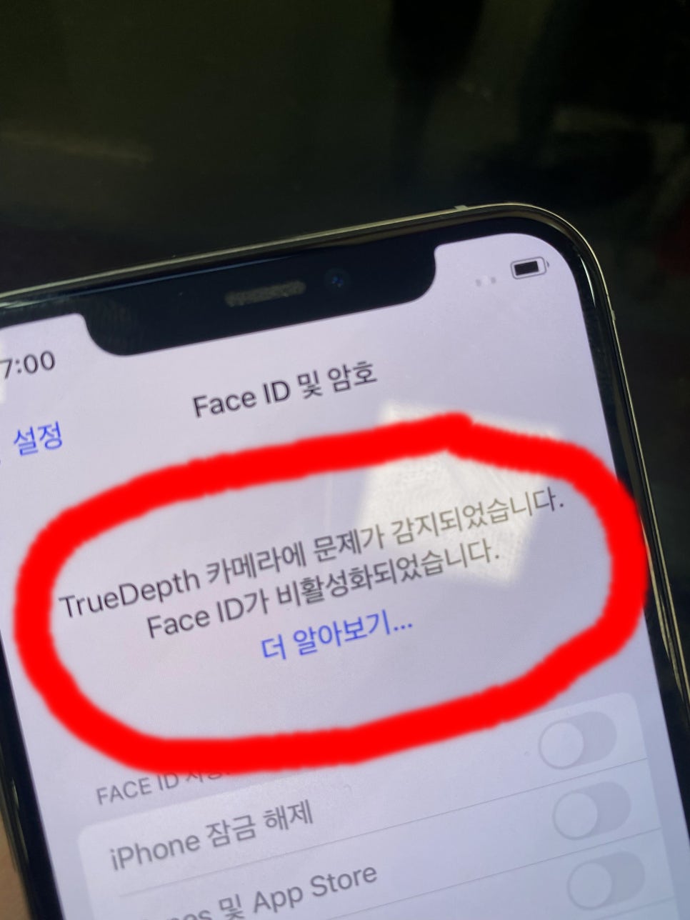 페이스아이디 이상이 생겼을때 트루뎁스카메라 문제가 감지 되었습니다 . 라는 문구가 화면에 표시된건