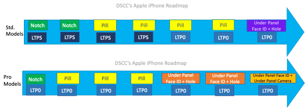 디스플레이 분석가 로스 영이 트위터에 공개한 로드맵에 따르면 애플은 아이폰15 시리즈 및 아이폰16 시리즈까지 다이나믹 아일랜드 디스플레이를 사용할 계획이다.