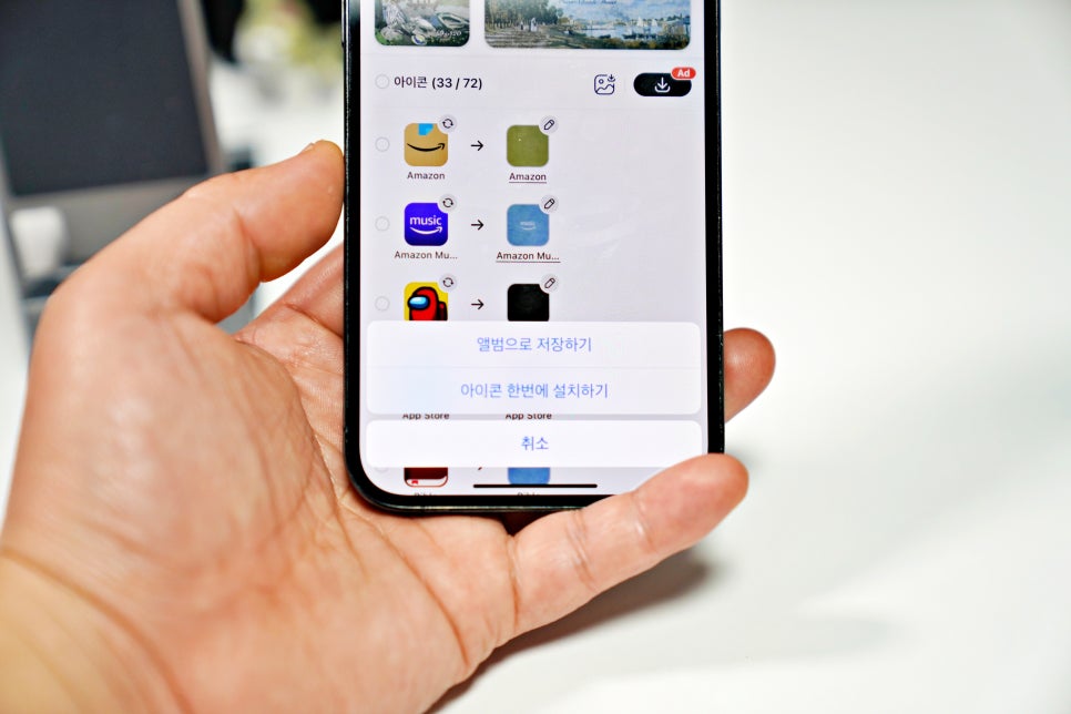 참고로 아이콘의 경우 앨범에 저장, 한 번에 설치하기 두 가지 옵션을 선택해서 다운로드할 수 있다. 앨범에 저장하는 경우 직접 단축어를 생성해야 하는 불편함이 있어서 저는 자동 설치를 사용하고 있다.