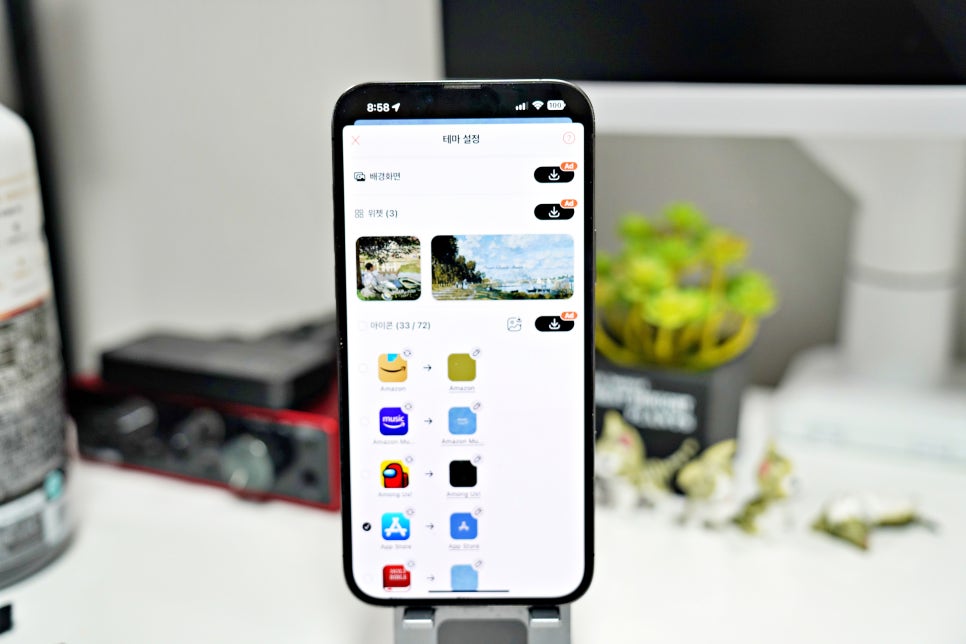 아이폰 홈 화면은 조금 더 다양한 변화를 줄 수 있다. Photowidget 앱에서 테마를 확인해 보면 각양각색의 콘셉트로 디자인된 아이폰 배경화면을 미리 볼 수 있다. 테마를 다운로드하는 것만으로 보고 있던 배경화면을 그대로 만들 수 있기 때문에, 특별히 원하던 콘셉트 디자인이 없다면 이미 만들어진 테마를 활용해 보아도 좋을 것 같다.