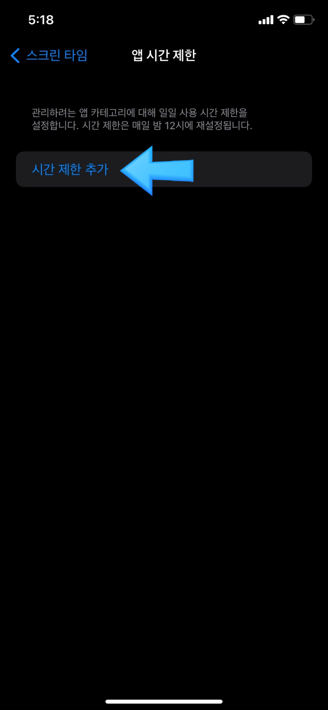 [앱 시간제한] 탭을 눌러서 설정을 해줍니다.