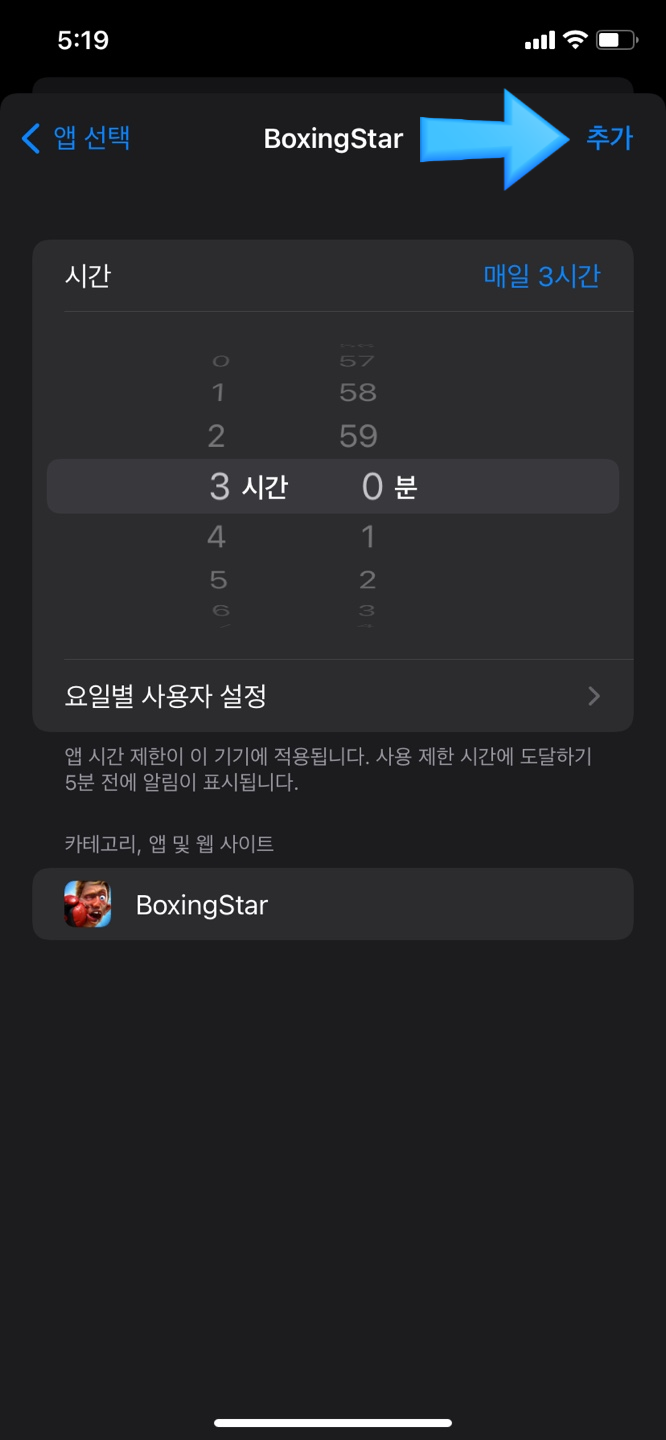 이제 시간을 제한할 앱을 확인해 볼 수 있고