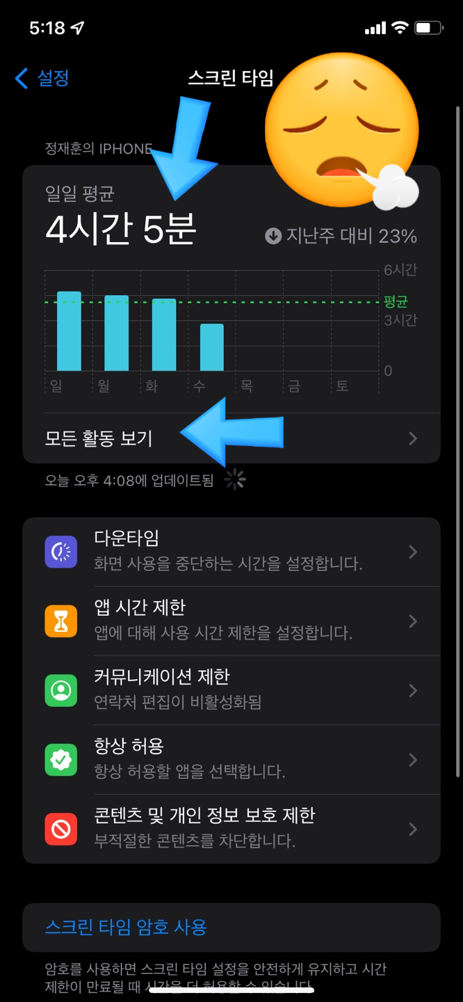 오늘은 이렇게 아이폰 사용시간 확인 방법과