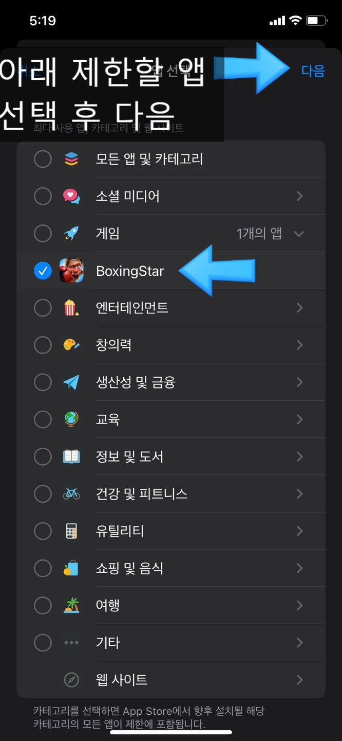 앱을 선택하셨다면 [다음] 버튼을 눌러주세요