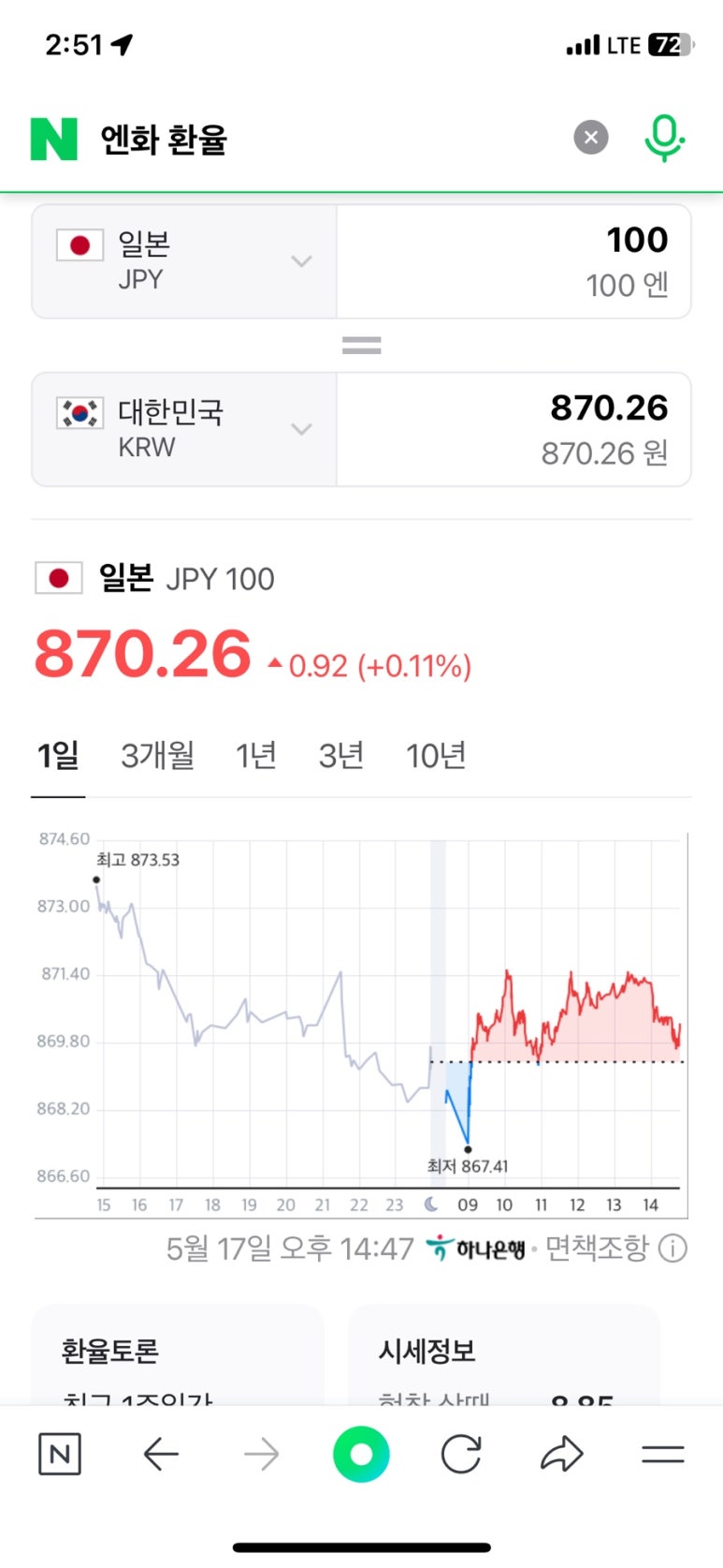 언젠가 갈 일본을 위해 엔화를 또 쟁여두었다. 860대 사는게 목표였는데 그래도 870이면 좋아~